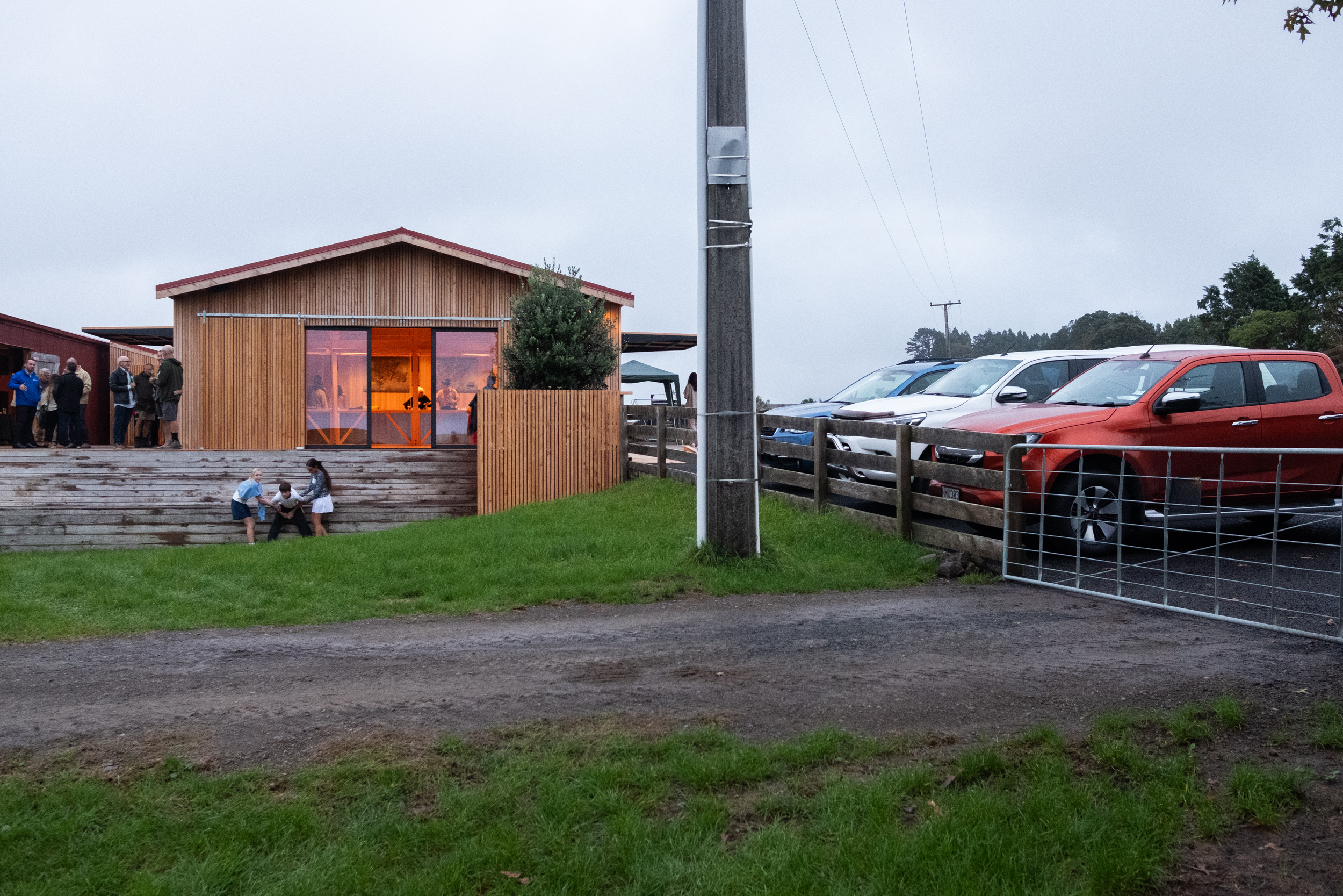 A rainy but joyous dusk visit to Papamoa to celebrate the opening of Leith Macfarlane's Summerhill Community Base. The