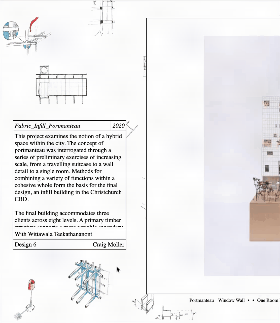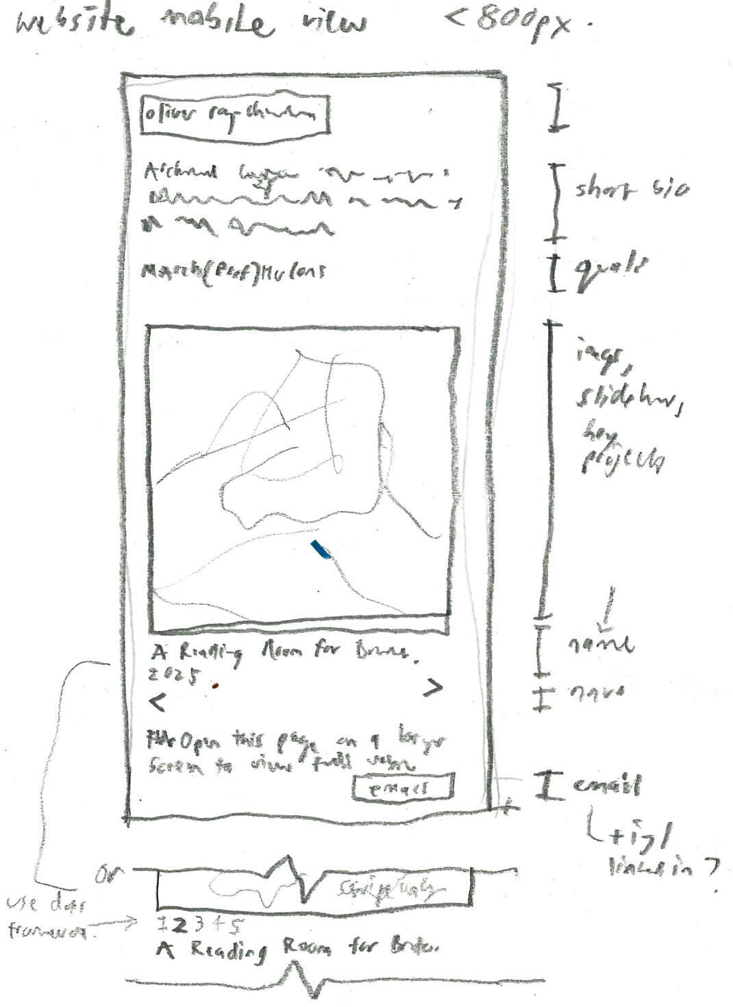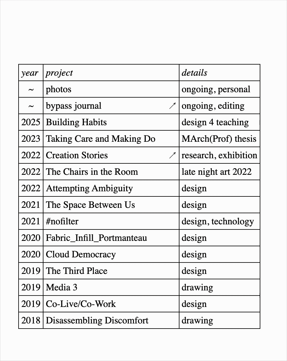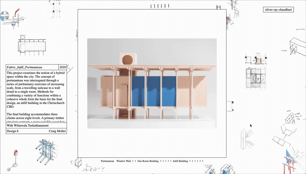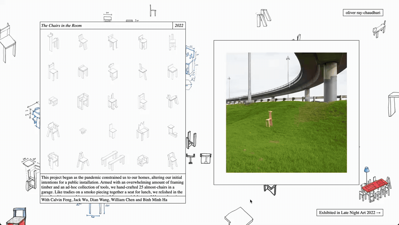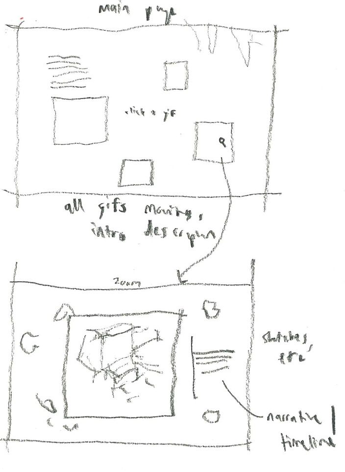 Inspired by the handmade web2 movement (and constrained by my technical abilities), the website uses only basic code. Elements are included close to their most raw form with minimal styling, and simple user interactions provide a sense of reciprocity to visitors without asking them for too much. Final drawings, photographs and text sit against a wallpaper of sketches and other process work. A celebration of the making of a thing as much as the completed product, like flipping through a sketchbook. The website rewards careful looking and only functions on larger computer screens, not on mobile. It asks visitors to take some time out of their day to explore, not just a quick scroll. |